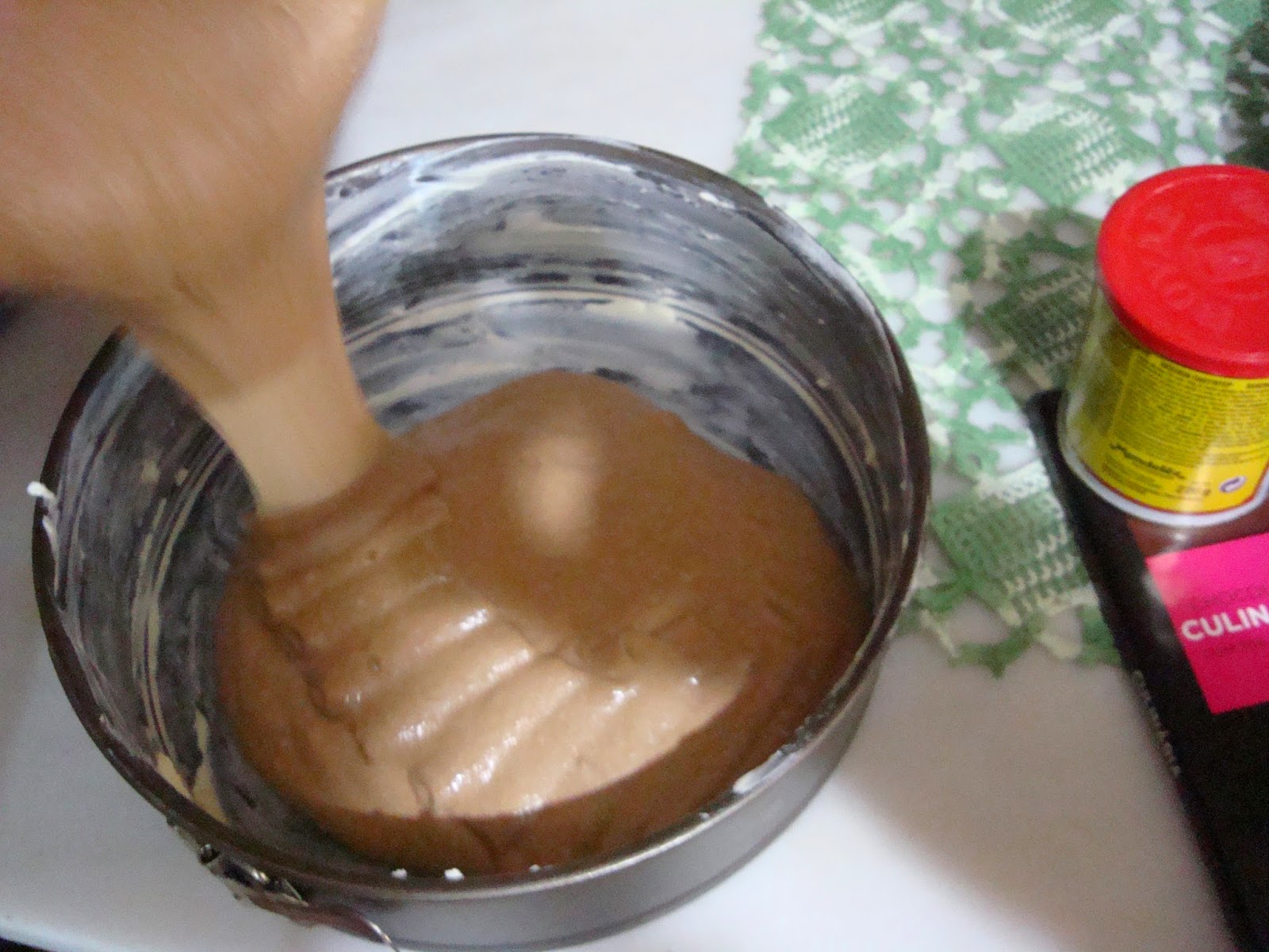 Numa tigela, à parte, dissolva o chocolate na água morna e misture na massa.