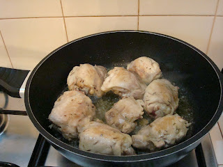 As perninhas e as coxas não são tão secas como o peito e por isso têm a minha preferência. No entanto esta receita pode ser feita com qualquer parte parte do frango. No caso de utilizar o peito aconselho que, após a cozedura, o desfie.