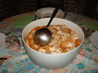 Quando a maruca estiver cozida retire-a do lume e apague este. Limpe o peixe de peles e espinhas, divida-o em pedaços e reserve junto com o camarão.